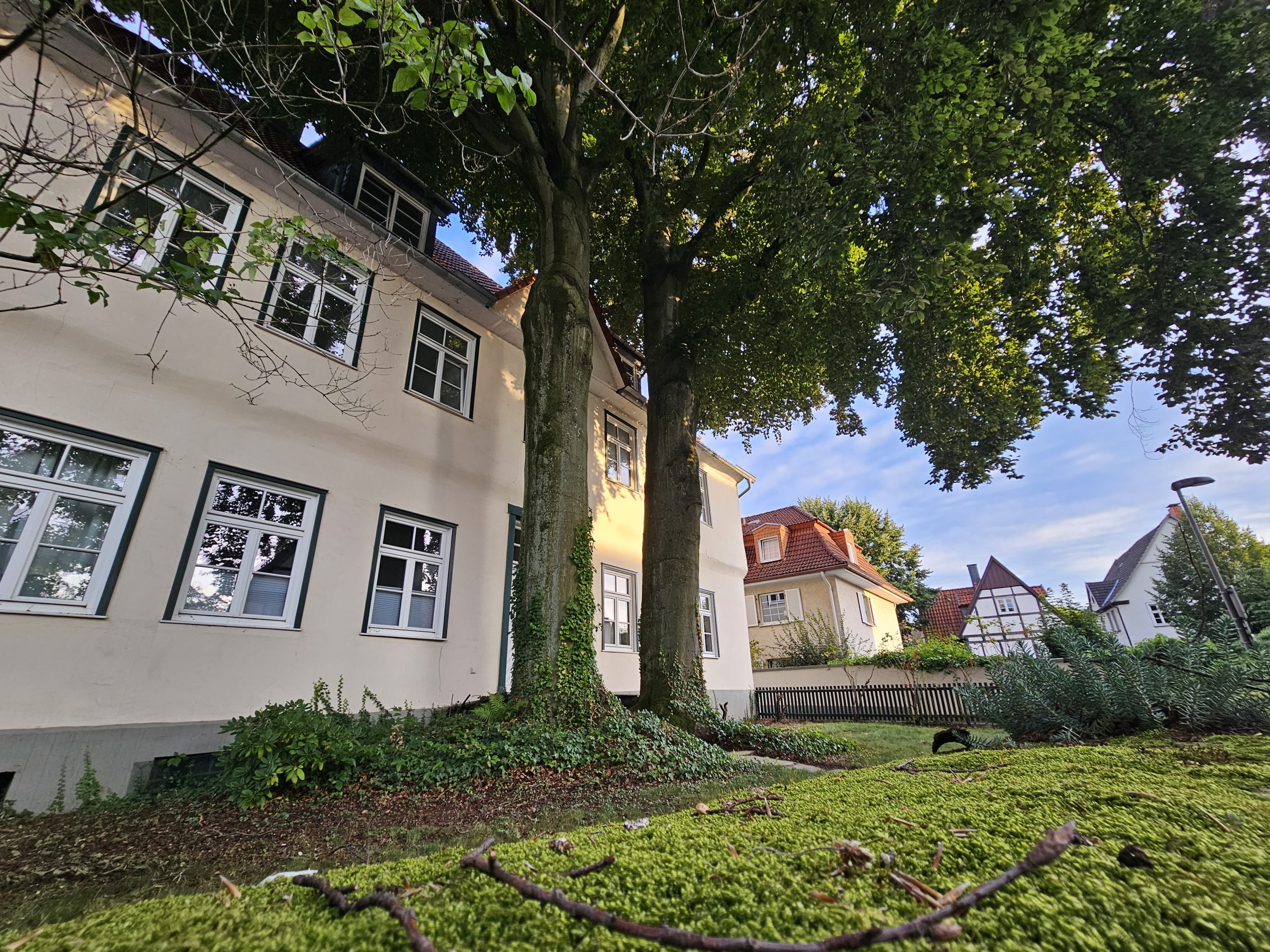Der Außenbereich des Patrizierhauses St. Pauli ist ebenso beeindruckend. Ein gemütlicher Grillplatz unter den uralten Buchen des Hauses lädt mit Blick auf die Paulikirche zum Verweilen und Genießen ein. Hier kann man die warmen Sommerabende bei einem leckeren Grillabend ausklingen lassen und die historische Atmosphäre der Umgebung auf sich wirken lassen.