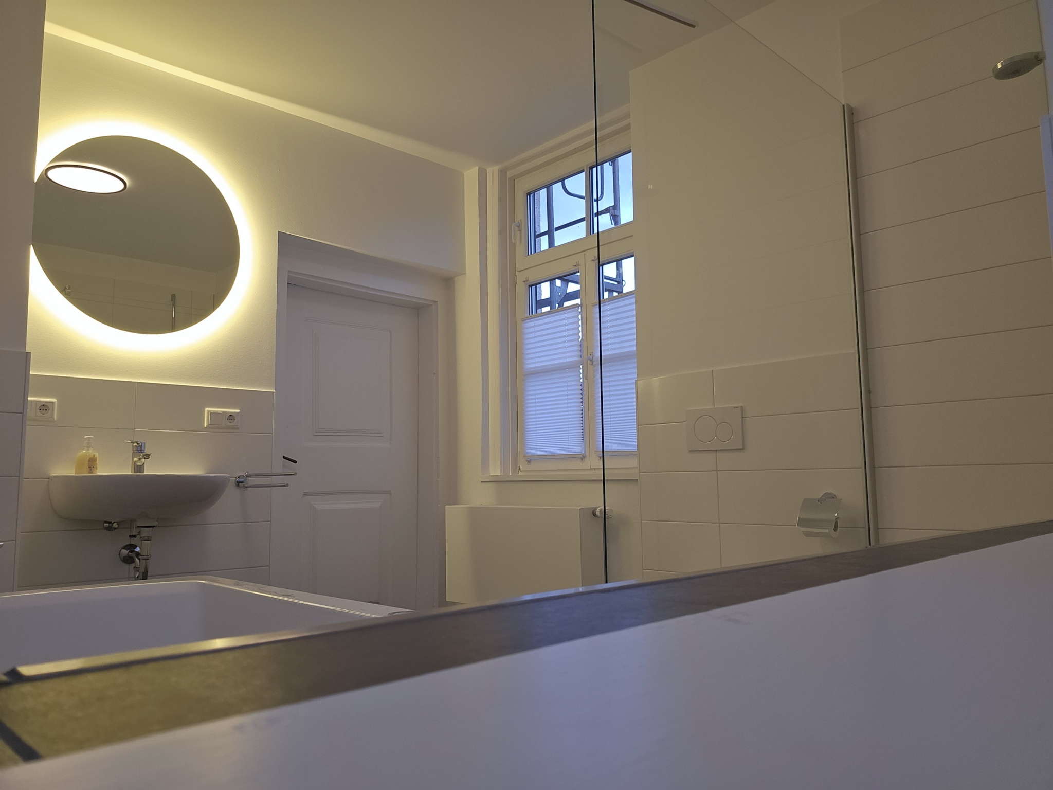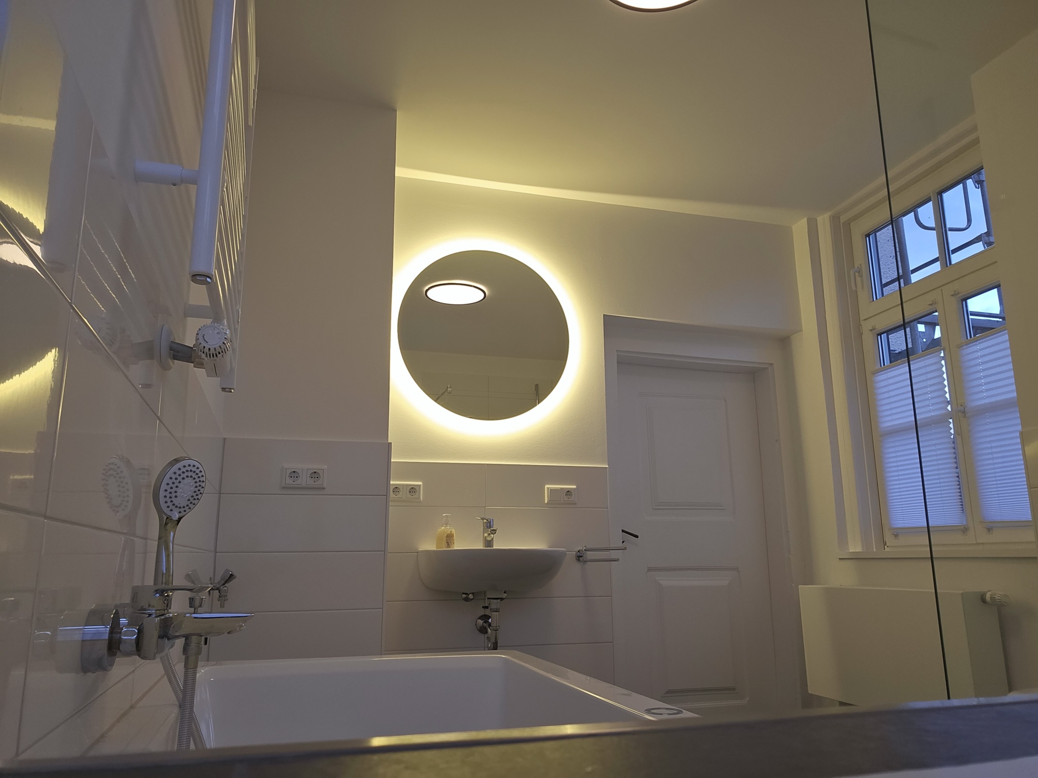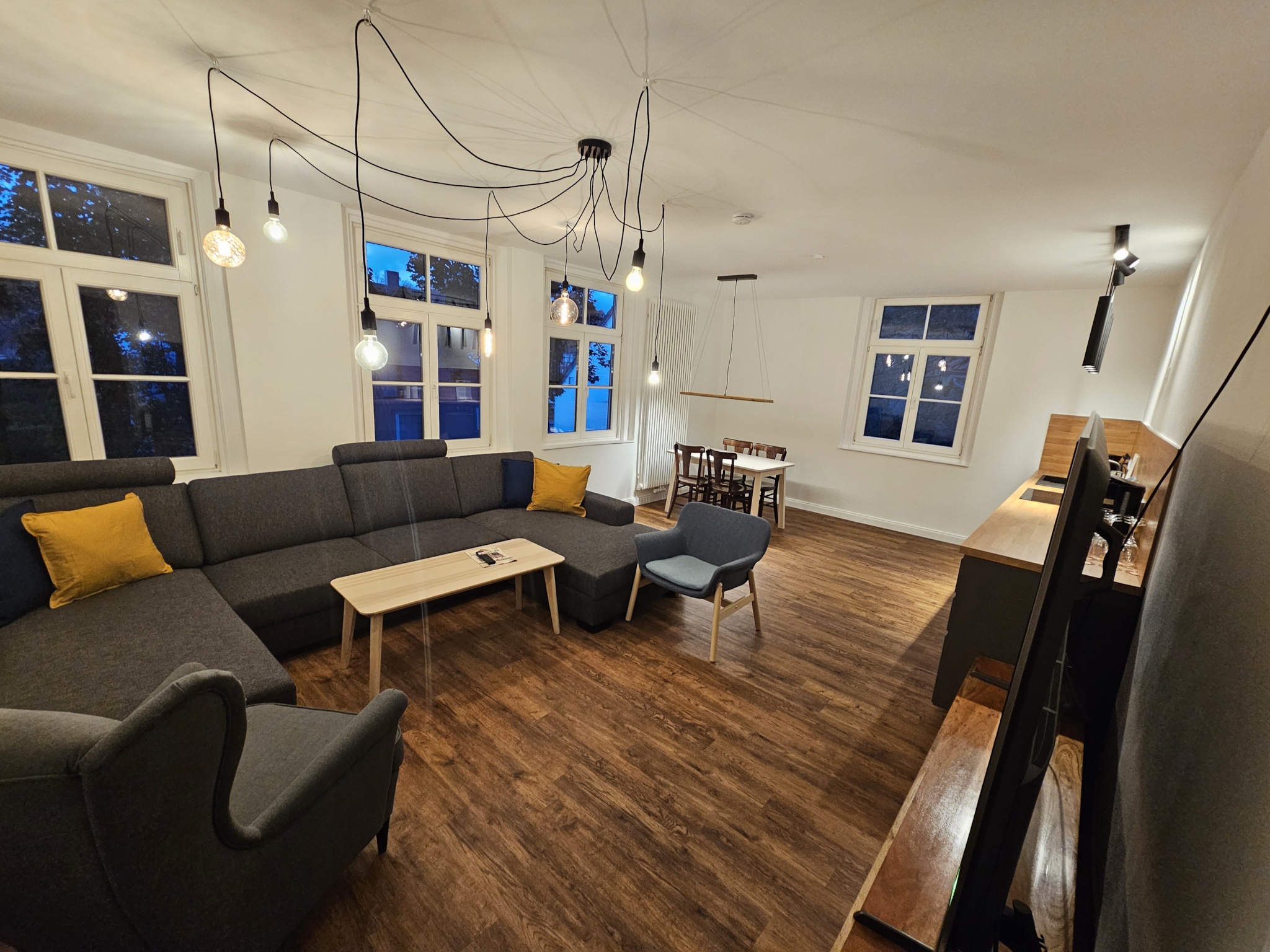 Die Wohnbereiche sind ein weiteres Highlight des Hauses. Mit beeindruckenden 85-Zoll-Smart TVs (Simplicissimus + St. Pauli) und je einer gemütlichen Sofalandschaft sind sie der perfekte Ort, um sich nach einem Tag in der Stadt zu entspannen. In der Aufteilung Simplicissimus hast du im geräumigen Bad, neben einer großen Dusche, sogar einen Whirlpool zu Verfügung. LAN und WLAN mit Gigabit Bandbreite sorgen dafür, dass du online bleibst, sofern du möchtest.